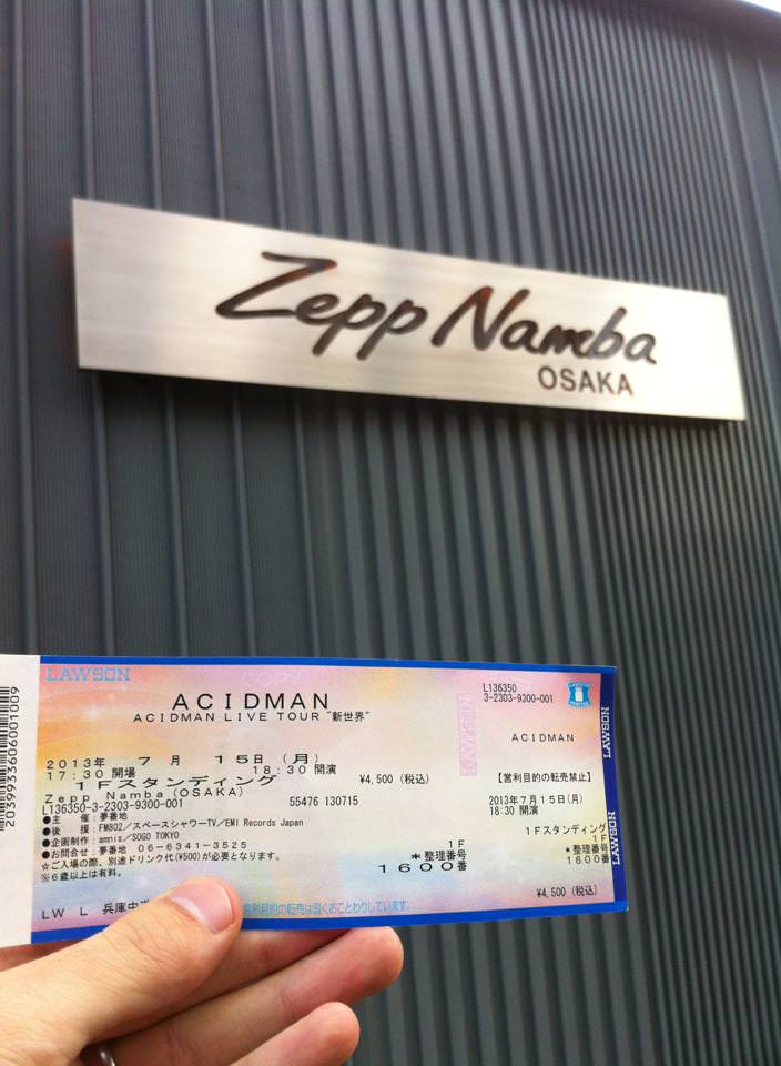 2013/7/15、大阪の難波にあるZepp NambaでACIDMANのライブに行ってきました。今年初めてのライブ参戦で、去年の年末のCOUNTDOWN JAPAN以来です。アーティストの単独ライブはこれまたACIDMANで2011年3月以来です。