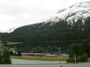 チューリッヒからサンモリッツへの移動。 電車で3時間半ぐらいの行程でした。 飛行機で疲れていた新米夫婦の私たちでもさすがにぐったりでしたね・・・。 妻は電車の中でほとんど寝ていました^^;